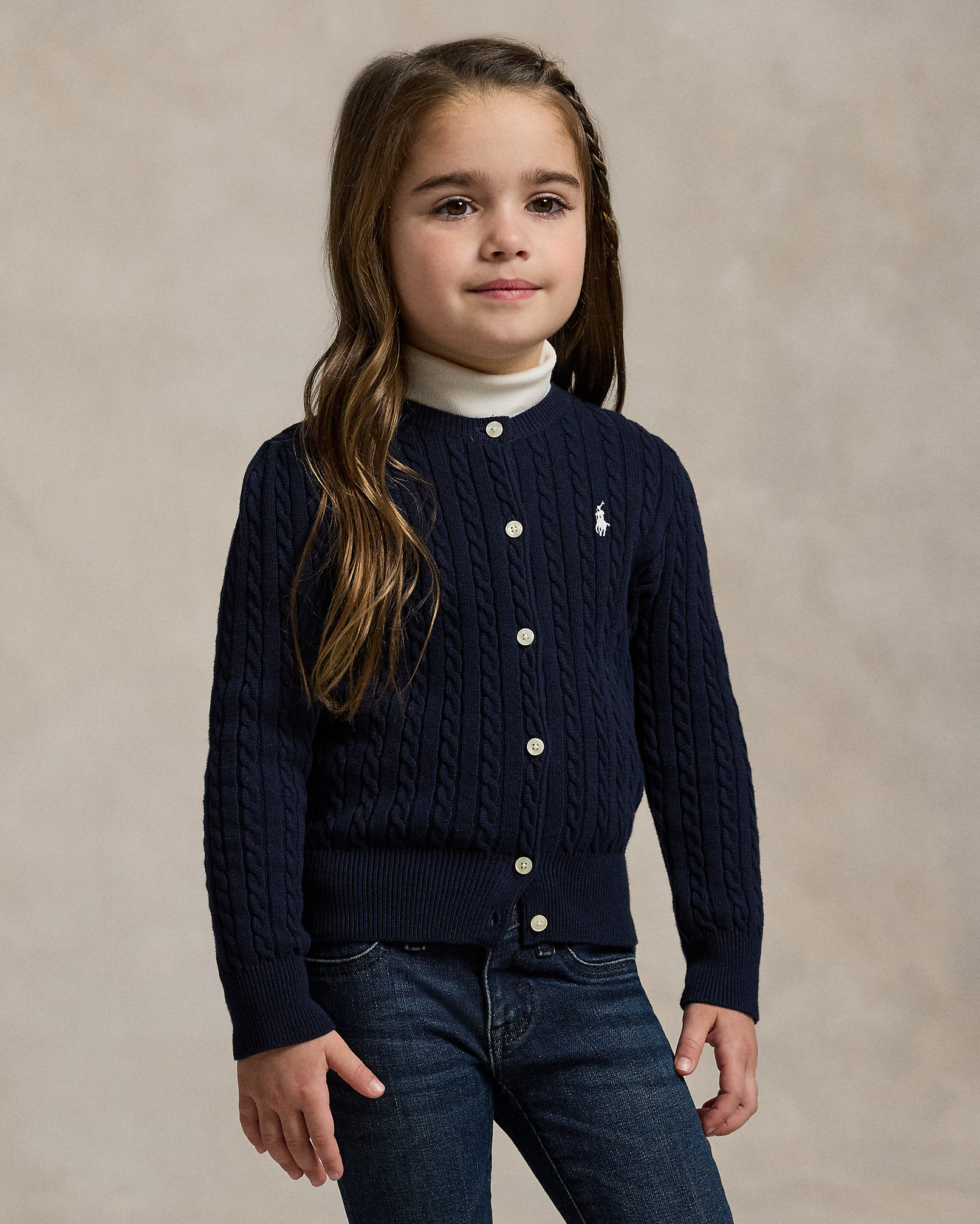 Polo ベア ケーブル コットン Vネック カーディガン