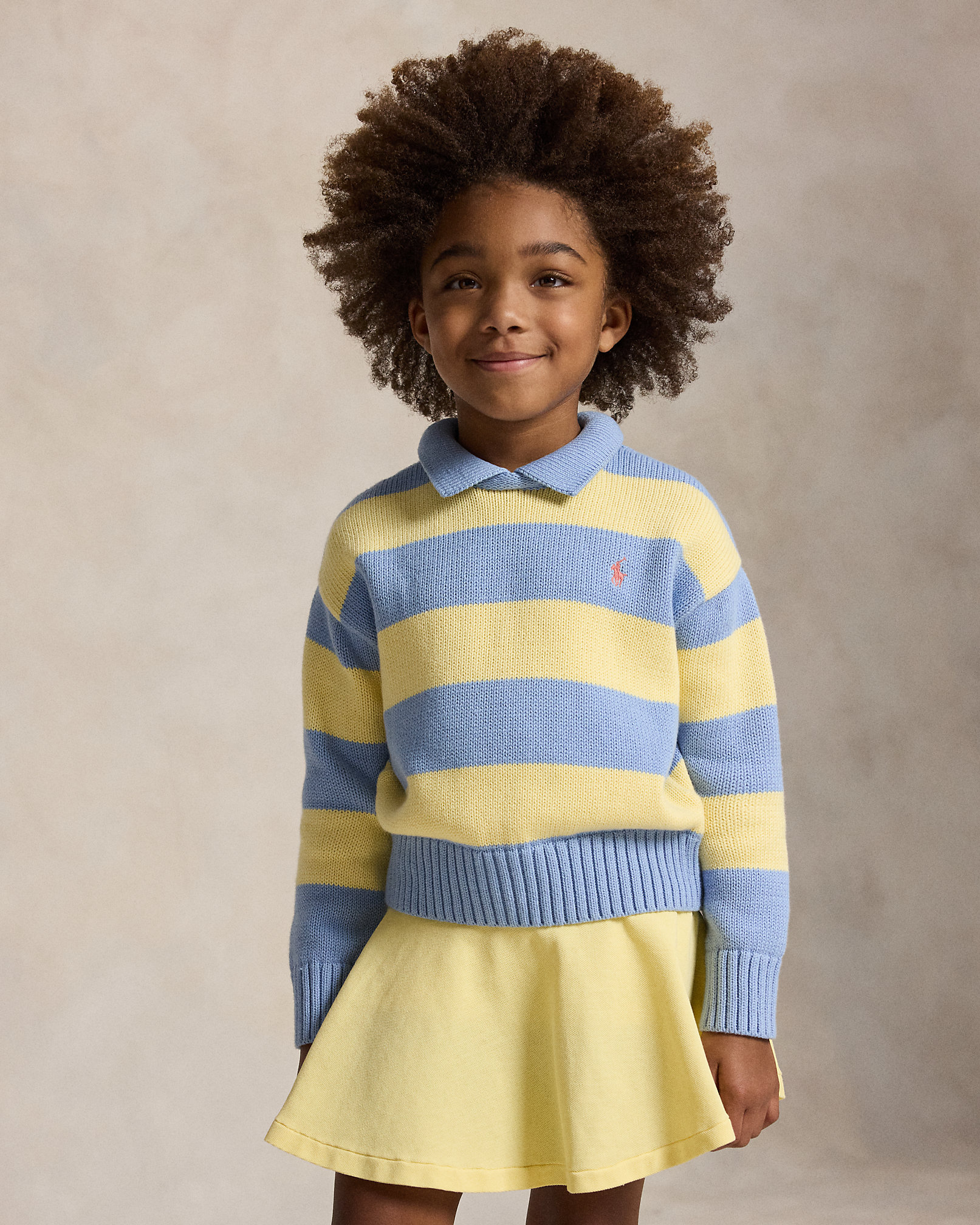 ストライプド コットン ポロ セーター