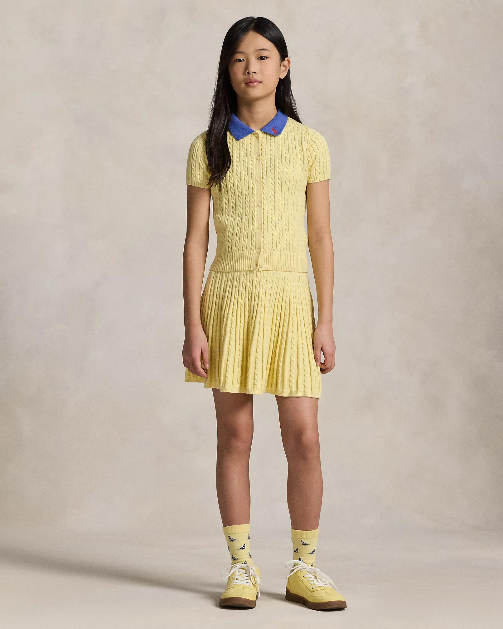 【Girls 7-16】パンツ& スカート の ミニケーブル コットン ポロ カーディガン & スカート をご紹介。ラルフ ローレンの世界観をお楽しみください。