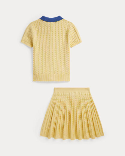 ミニケーブル コットン ポロ カーディガン & スカート
